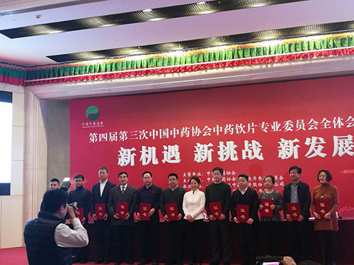 第四屆第三次中國中藥協會中藥飲片專委會于2018年12月15日在北京西藏大廈召開,國家藥品監督管理局、國家中醫藥管理局、國家中藥保護品種審評委員會、國家藥典委員會相關領導專家及中國中藥協會副會長劉張林、資深副會長張世臣、秘書長王桂華同80家中藥飲片企業的代表出席會議。